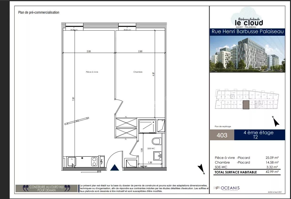 LOCATION APPARTEMENT T2 MEUBLE 91120 Palaiseau. Rue Henri Barbusse, au sein du campus l'Eclat. A quelques minutes à pied de la gare RER de Massy Palaiseau, des grandes écoles et du centre ville. Au sein d'une résidence neuve, sécurisé avec gardien, espace de vie commun et laverie. Un appartement deux pièces meublé avec goût mesurant 42.99m², situé au 4ème étage avec ascenseur. L'appartement dispose d'une kitchenette équipée, d'une salle d'eau et d'un WC séparé. chauffage individuelle électrique et eau chaude collectif inclus dans les charges. Une place de parking accompagne ce bien. Honoraires de location : 1 mois de loyer charges comprises