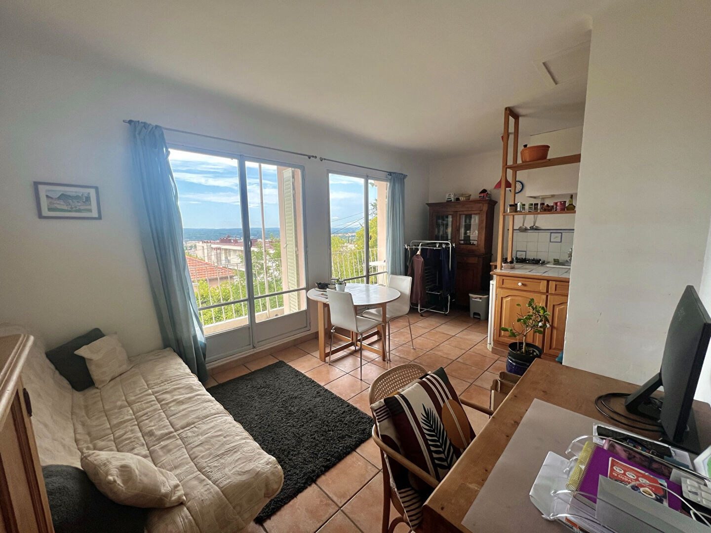 Aix en Pce 29 avenue Paul Cézanne Appartement meublé type 2 au 1er étage, vue dégagée, avenue Paul Cézanne, composé d'un séjour avec kitchenette, une chambre, une salle de bains. Séjour prolongé d'un balcon exposé sud. Loyer : 800 euros charges : 40 euros dépot de garantie : 800Honoraires : 467 DPE D 207 GES E 48 estimation cout annuel en éneergie 594 euros