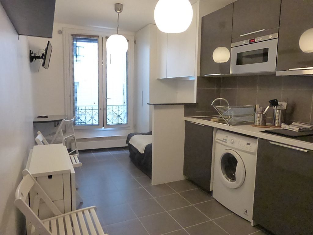 Au coeur des Abbesses rue André Antoine : Immopolis vous propose un Studio meublé, en très bon état et très bien agencé de 15.m2 au 3ème étage sur cour, comprenant : une pièce principale avec mobilier, couchage, nombreux rangements, téléviseur; kitchenette avec équipement électroménager, vaisselle; salle de douche entièrement carrelée avec cabine, sèche serviettes, lavabo, rangements, wc + une cave.