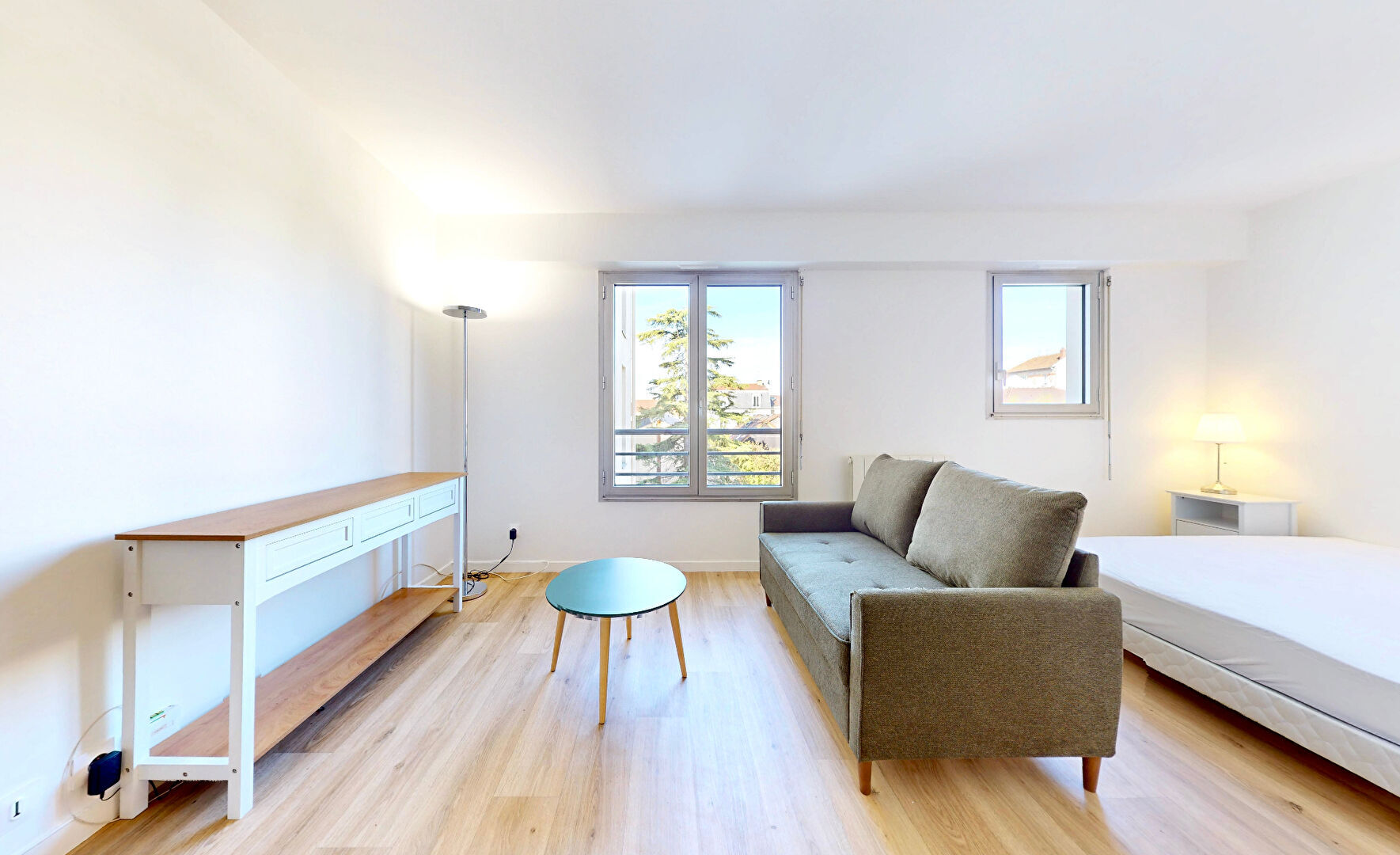 LA GARENNE HYPER CENTRE - PROCHE MARCHÉ - GRAND STUDIO LOUÉ MEUBLÉ Idéalement situé en plein coeur de la Garenne Colombes, au 2ème étage avec ascenseur d'un immeuble 1988 de standing, MAGNIFIQUE STUDIO de 35,87 m2 entièrement rénové, comprenant : Entrée avec grand placard (tringle + étagères), belle pièce de vie avec coin repas/bureau, salon (canapé, table basse, meuble TV), espace nuit (lit 140 cm, chevets). Cuisine ouverte aménagée et équipée avec four, plaque de cuisson, hotte, réfrigérateur-congélateur, four micro-ondes, bouilloire, cafetière et grille-pain. Salle d'eau avec douche et lave-linge. Chauffage et eau chaude : individuel électrique. Une CAVE et un EMPLACEMENT DE STATIONNEMENT en sous-sol. Ce bel appartement donnant exclusivement sur jardins en coeur d'îlot vient d'être rénové et n'a pas été habité depuis les travaux, le mobilier est neuf. A proximité immédiate de toutes les commodités : à 10 min des gares de La Garenne Colombes et Les Vallées (Ligne L-Saint Lazare), à 13 min de la station de tram Charlebourg (T2- La Défense), à 4 min du bus 164 (Porte de Champerret). Les commerces, marché et restaurants de la Place de la Liberté et de la rue Voltaire sont à seulement 4 minutes à pied. Location meublée : Dépôt de garantie 2060 euros, honoraires d'agence 538,05 euros.