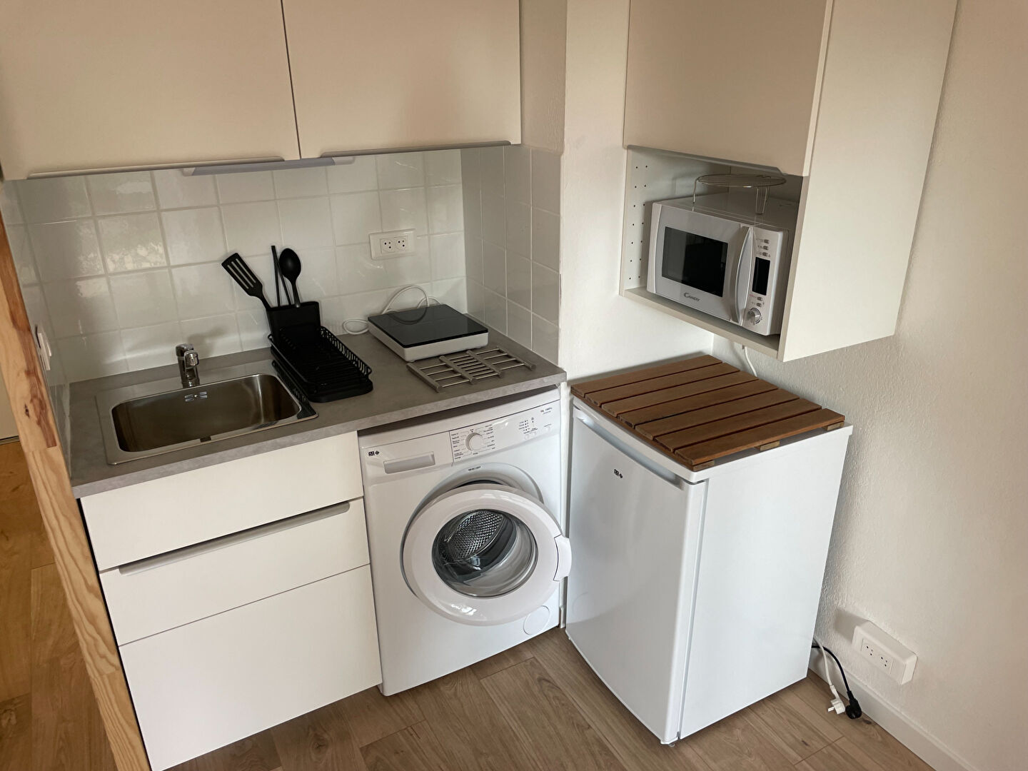 Situé dans une résidence calme dans le centre de Luynes, appartement de 19m² entièrement rénové composé d'une entrée avec rangements, un séjour avec cuisine ouverte équipée, une salle d'eau avec W.C. L'appartement dispose d'une terrasse de 8m², un jardin de 39m² et une place de parking privative. - Loyer: 605 euros - Charges: 35 euros - Dépôt de garantie: 605 euros - Honoraires: 247 euros
